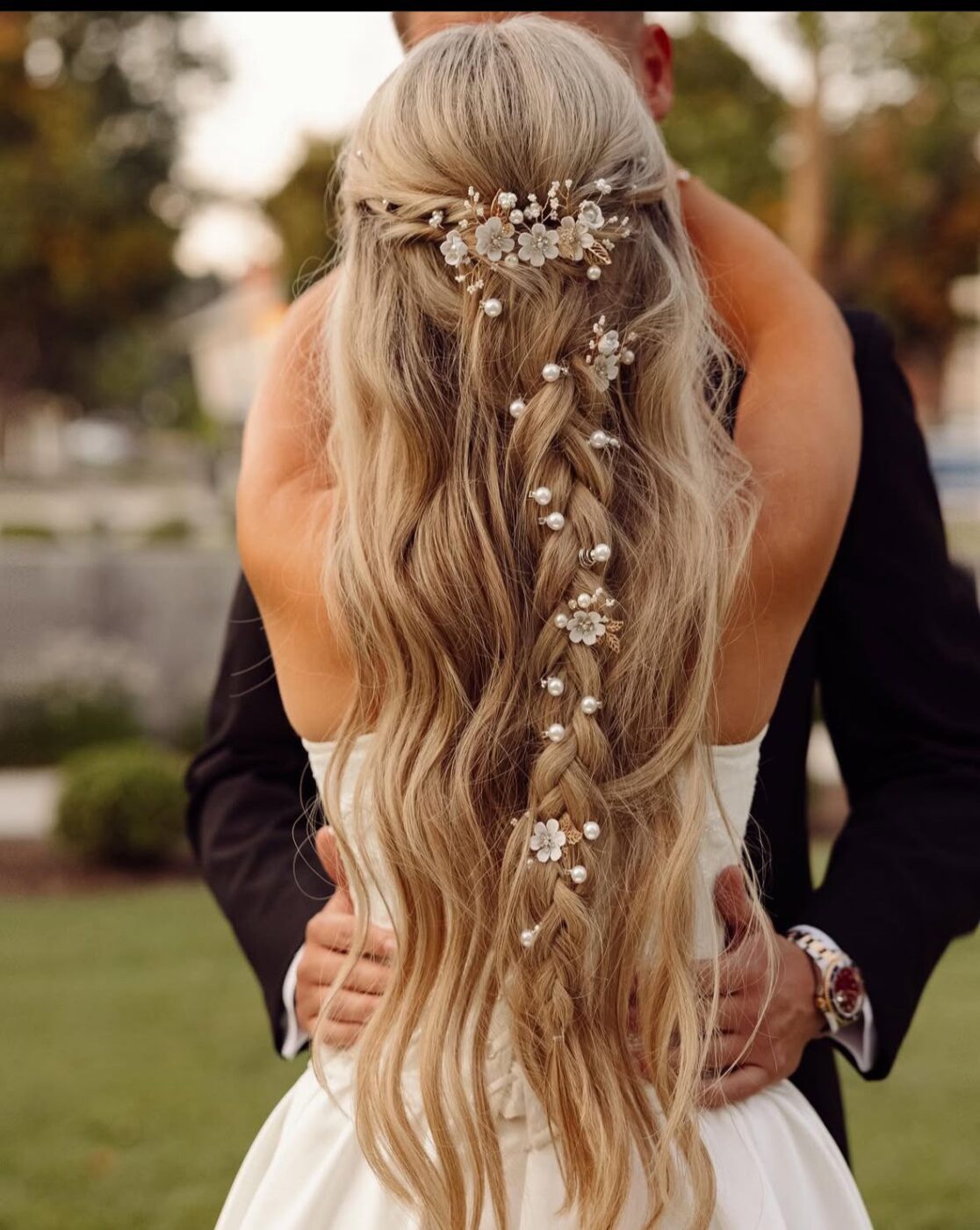 - Haarclips oder Blumen als dezenter Akzent