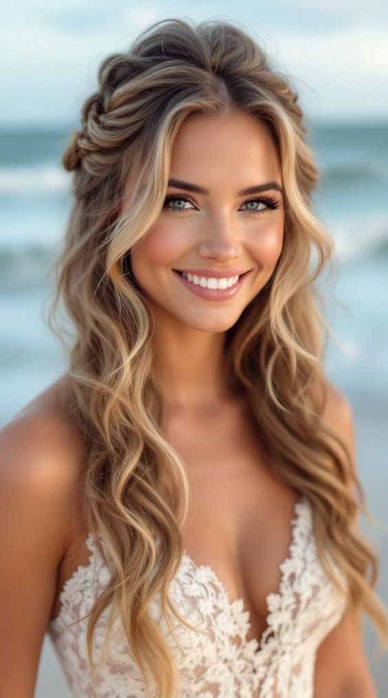 Half Up Do – Romantische Brautfrisur für die Strandhochzeit