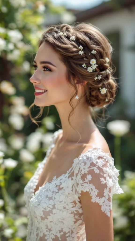 Flechtelementen oder dezentem Haarschmuck.