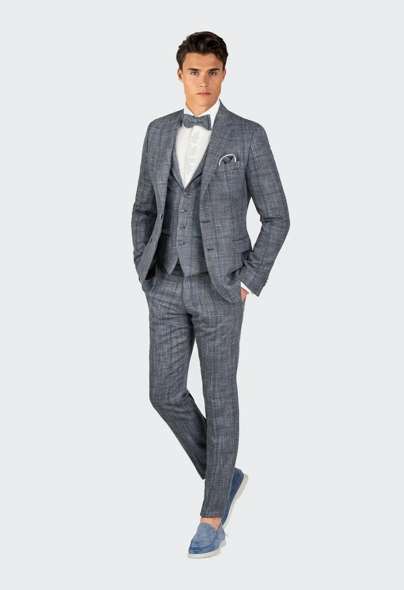 Ein sehr schöner Maßanzug in der Farbe Blau der Marke ROKA, dreiteilig mit passender Weste. Die Rückseite der Weste besteht aus dem gleichen Stoff wie der Anzug, was dem Maßanzug ein besonders luxuriöses Aussehen verleiht. Die Hose des Maßanzugs hat keine Bundfalte und eine außergewöhnlich gute Passform, die speziell von ROKA entwickelt wurde. Dieser Maßanzug ist in begrenztem Umfang auch als Konfektion ab Lager lieferbar. Größenanpassungen können in unserer eigenen Werkstatt vorgenommen werden. Wenn Sie kurzfristig eine Konfektionsversion dieses Anzugs tragen möchten, fragen Sie zuerst, ob Ihre Größe in einem unserer Stores vorrätig ist.