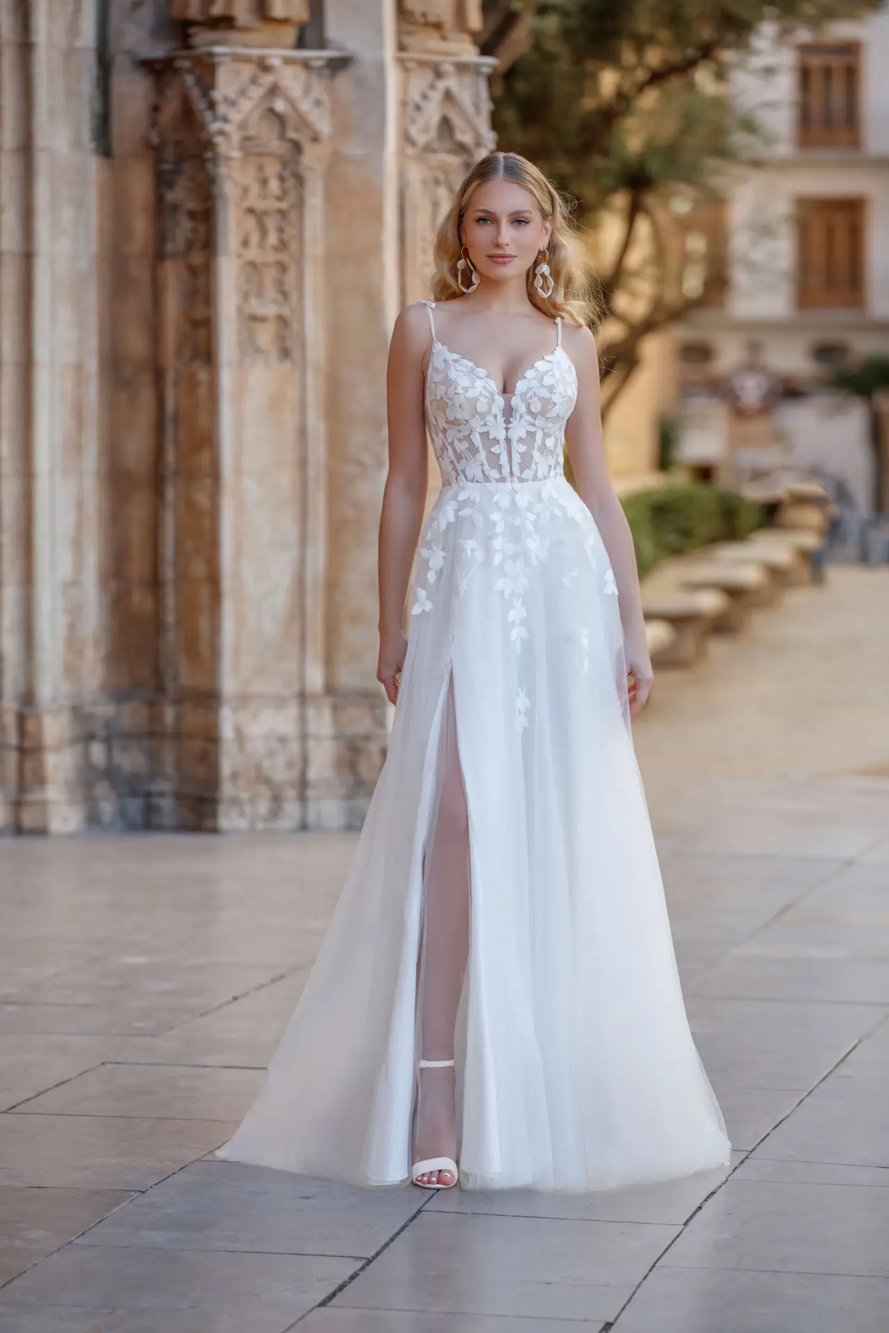 Das A-Linien-Brautkleid ähnelt dem Buchstaben „A“ und ist eines der beliebtesten Silhouetten unter Bräuten. Diese Silhouette betont die Taille, fällt sanft über die Hüften und bringt breite Schultern ins Gleichgewicht.