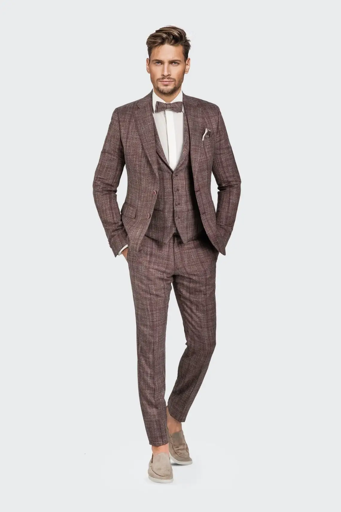 Ein sehr schöner Maßanzug in der Farbe Burgunderrot der Marke Roka Maatpak Trouwen, dreiteilig mit passender Weste. Die Rückseite der Weste besteht aus dem gleichen Stoff wie der Anzug, was dem Maßanzug ein besonders luxuriöses Aussehen verleiht. Die Hose des Maßanzugs hat keine Bundfalte und eine außergewöhnlich gute Passform, die speziell von ROKA entwickelt wurde. Dieser Maßanzug ist in begrenztem Umfang auch als Konfektion ab Lager lieferbar. Größenanpassungen können in unserer eigenen Werkstatt vorgenommen werden. Wenn Sie kurzfristig eine Konfektionsversion dieses Anzugs tragen möchten, fragen Sie zuerst, ob Ihre Größe in einem unserer Stores vorrätig ist.