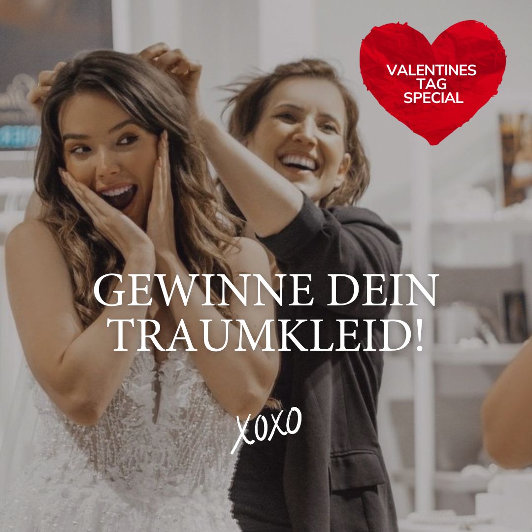 Findest du bis zum Valentinstag dein Traumkleid, dann hast du die Chance dieses unter allen glücklichen Bräuten im Aktionszeitraum von uns geschenkt zu bekommen.